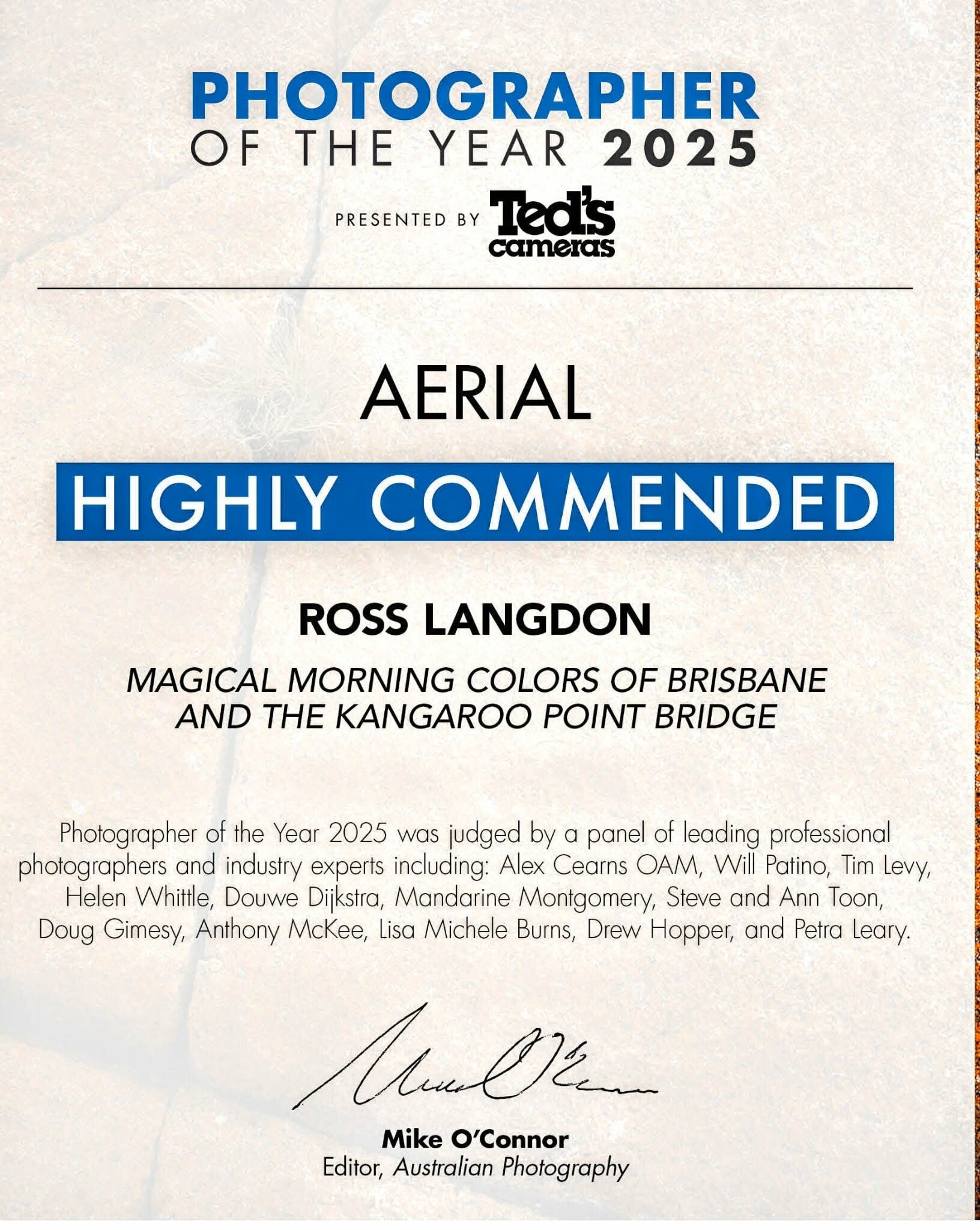 Recognition: Australian Photographer of the Year, Lord Mayors Photographic Awards