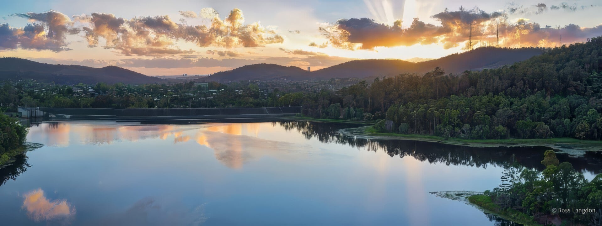 Primary Entity: Fine Art Panorama, Heritage Dam Photography, Reservoir Landscape, Brisbane History Print.