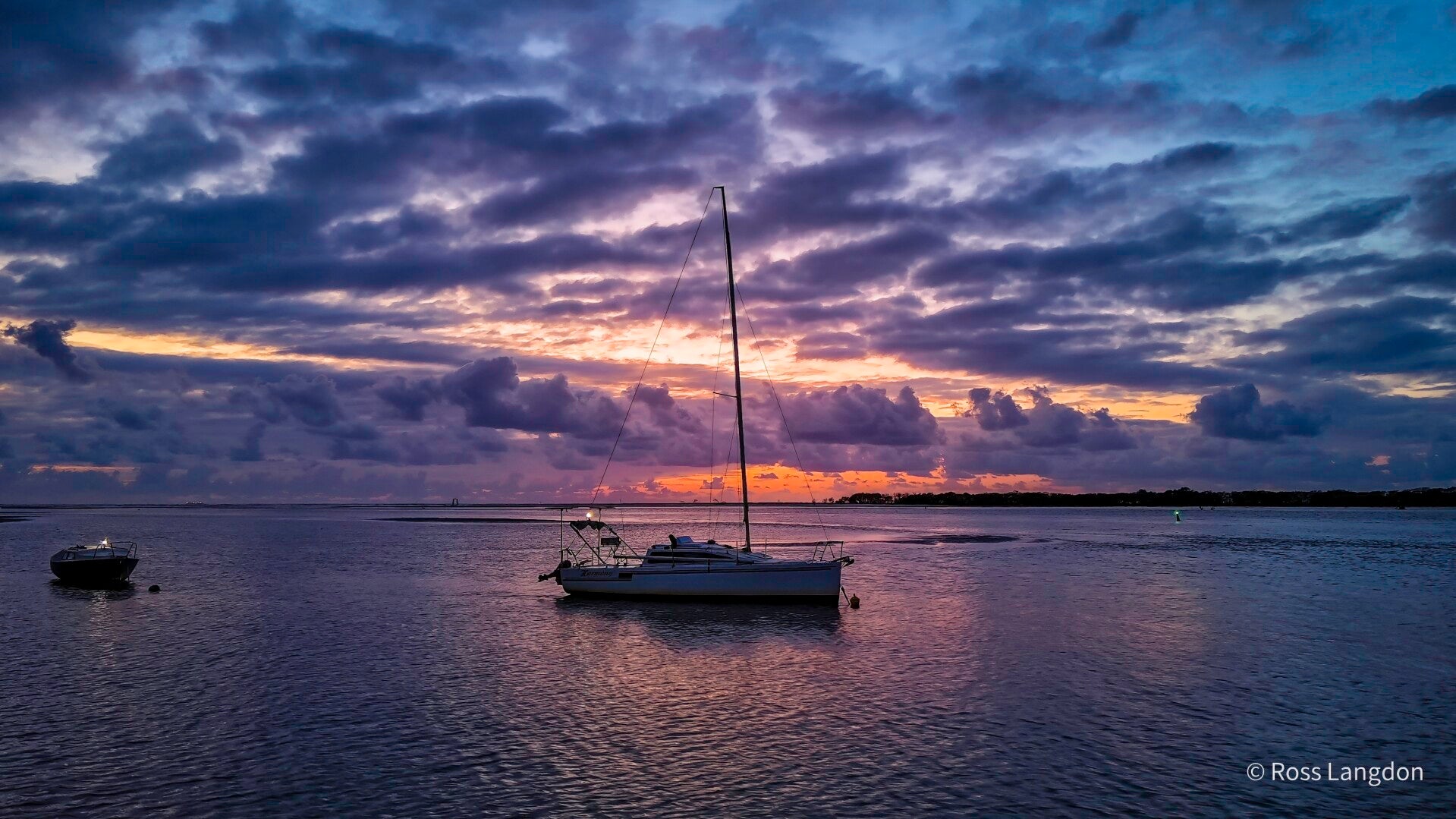 Bribie Island is the smallest and most northerly of three major sand islands forming the coastline sheltering the northern part of Moreton Bay, Queensland, Australia. The other islands are Moreton Island and North Stradbroke Island. Bribie Island is 34 kilometres (21 miles) long, and 8 kilometres (5.0 miles) at its widest. Bribie Island hugs the coastline and tapers to a long spit at its most northern point near Caloundra, and is separated from the mainland by Pumicestone Passage. The ocean side of the island is somewhat sheltered from prevailing winds by Moreton Island and associated sand banks and has only a small surf break. The lee side is calm, with white sandy beaches in the south. Most of the island is uninhabited national park (55.8 square kilometres or 21.5 square miles) and forestry plantations.