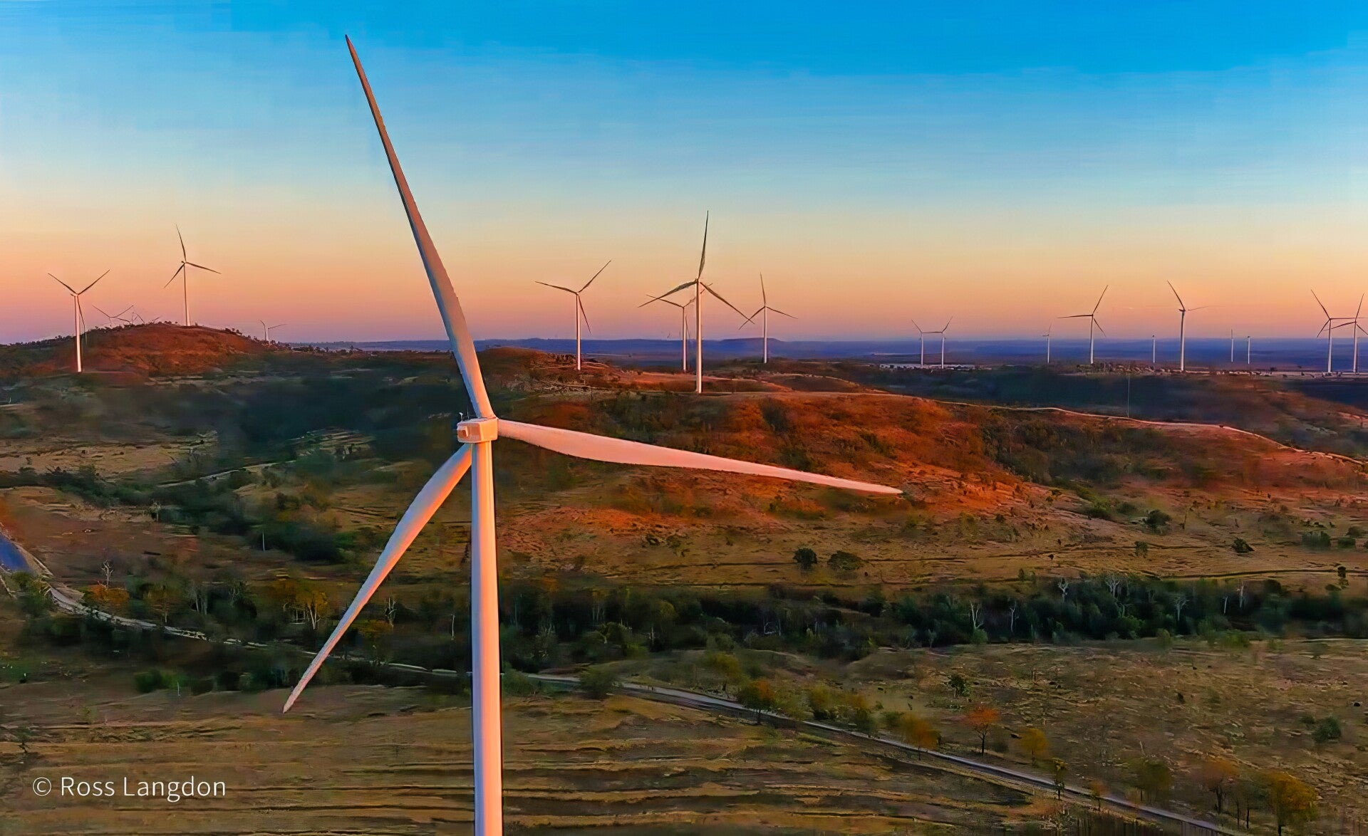 Coopers Gap Wind Farm is a wind power station located between the towns of Dalby & Kingaroy, Queensland, Australia. Coopers Gap Wind Farm is one of the largest in Australia with a total generation capacity of up to 453 megawatts (607,000 hp). The area is mostly cleared, cattle-grazing country and covers approximately 12,000 hectares (29,700 acres) in total. The wind farm consists of 123 turbines extending across a series of ridge lines within the site. The wind turbines are approximately 180 metres (591 ft) in height from the tower base to the tip of the blade. Each tower is approximately 113 metres (371 ft) high, and the blades approximately 67 m (220 ft) in length with a rotor diameter of 137 metres (449 ft). It is expected to reduce greenhouse gas emissions by up to 2.2 million tonnes annually.