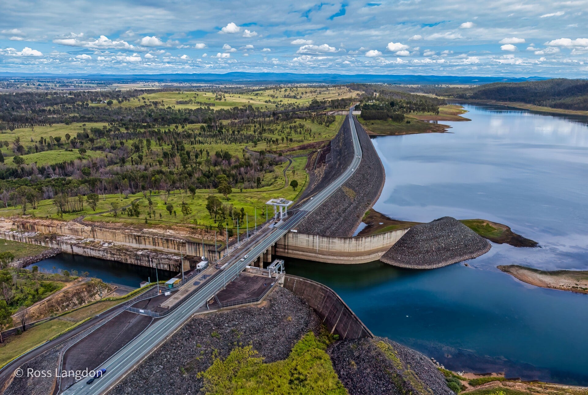 The Wivenhoe Dam is a rock and earth-fill embankment dam with a concrete spillway across the Brisbane River in south east Queensland, Australia. The dam structure is 59 metres (194 ft) high and 2,300 metres (7,500 ft) long and holds back a 1,165,000-megalitre (256×109 imp gal; 308×109 US gal) reservoir when at full capacity. The dam is located about 80 kilometres (50 miles) by road from the city of Brisbane. The primary purpose of the dam is the supply of drinking water for the Brisbane and Ipswich regions. In addition, the dam also provides an additional 60% flood mitigation capacity & hydroelectricity when required, and recreation use. The impounded reservoir is called Lake Wivenhoe.
